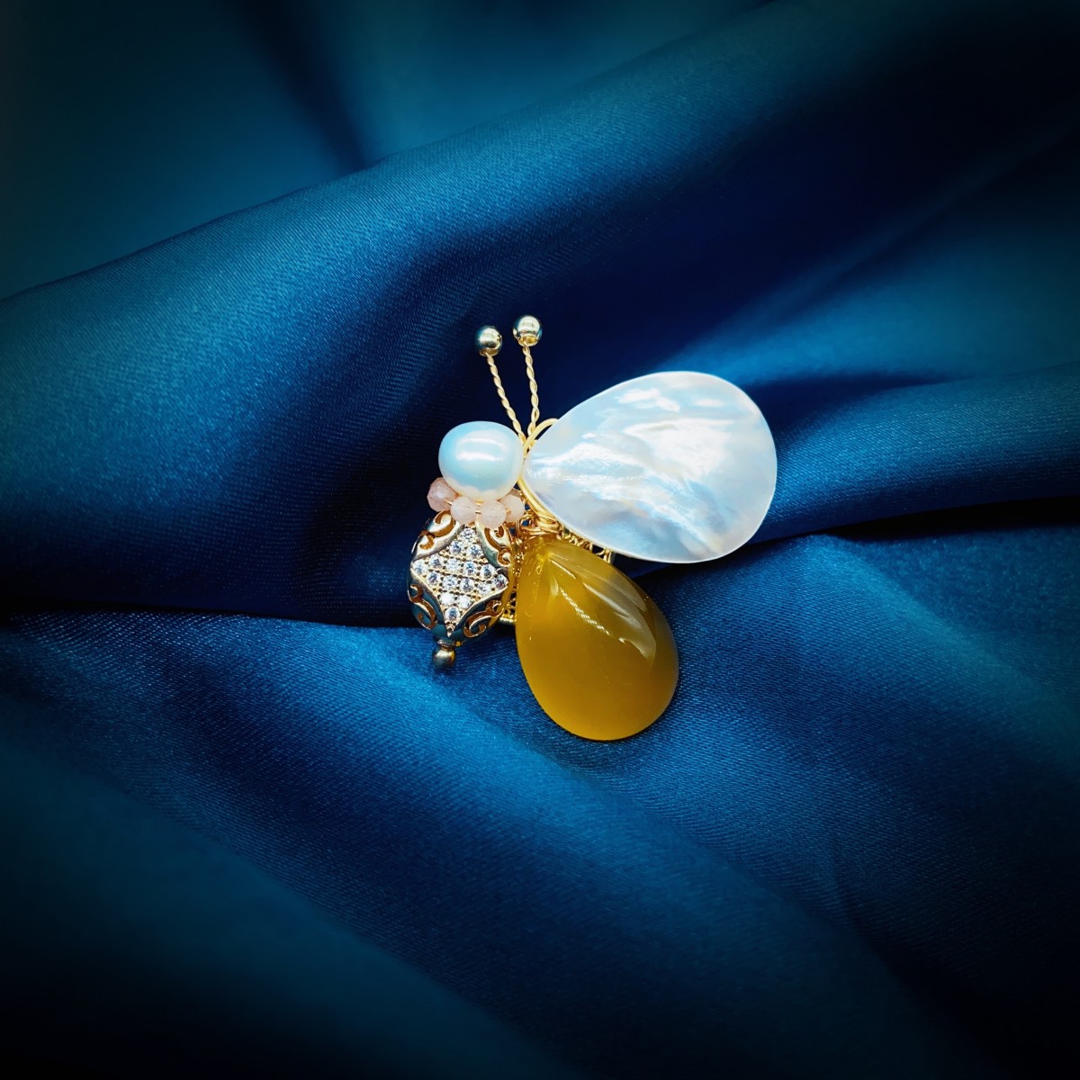 The Butterfly and Pearl Brooch is a delightful accessory that exudes freshness, sweetness, and the vibrant charm of spring.