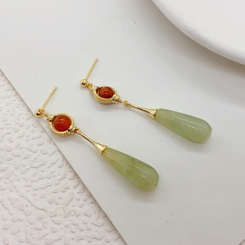 ED060148 Hualuo Pine Forest Pearl Earrings Ancient Gold-plated Earrings Retro Long Earrings Jasper Earrings Explosive Style