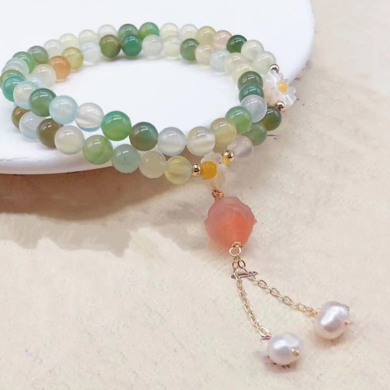 Elevate your style with the Daisy Grape Agate Bracelet. Its natural freshwater pearl and net red trend design exude fashionable elegance.