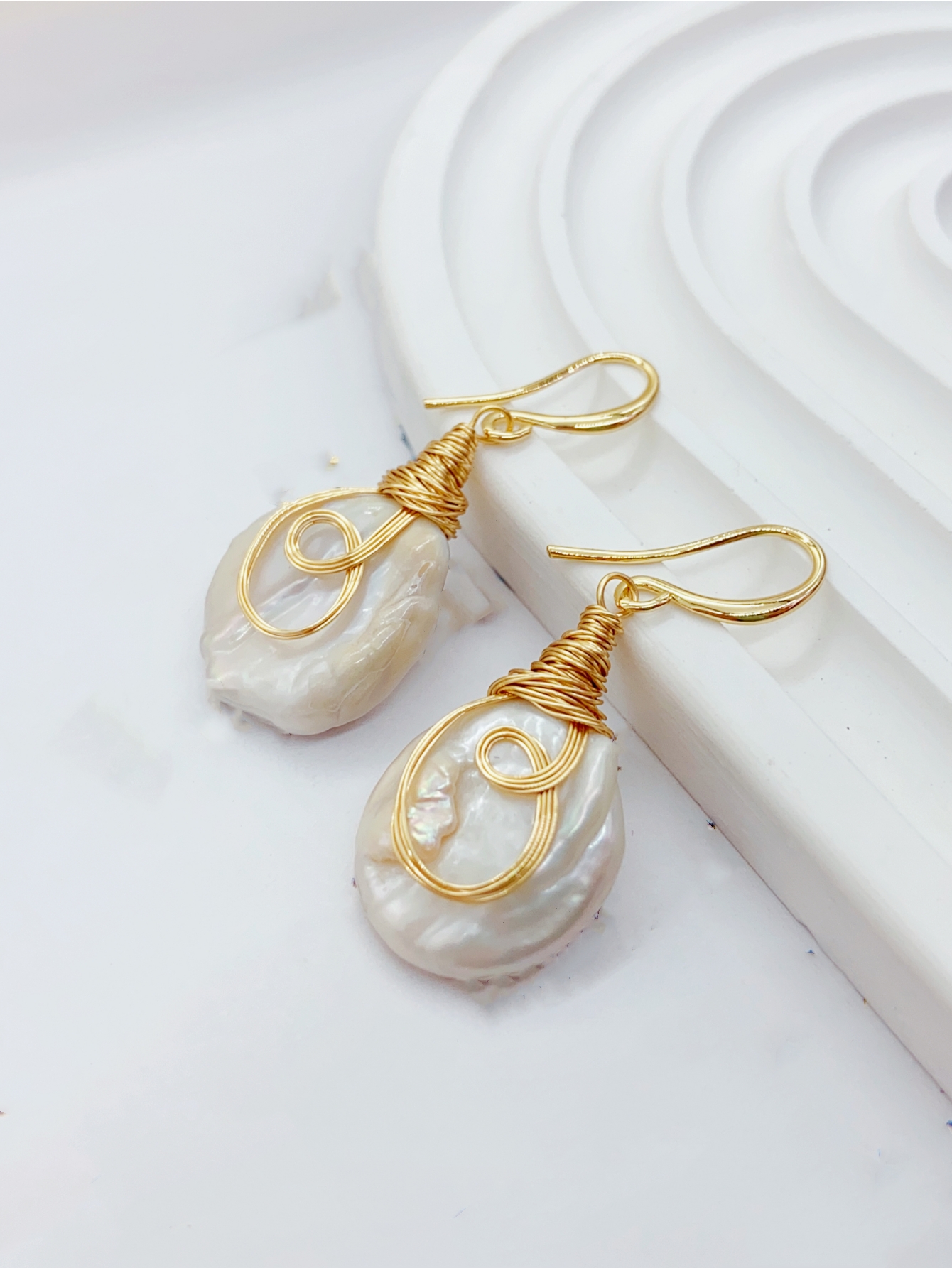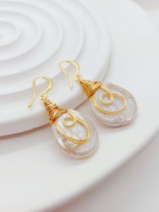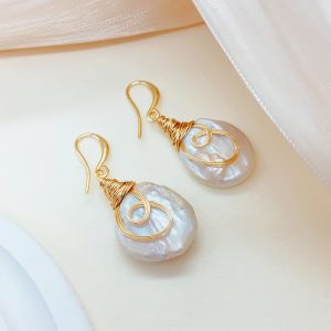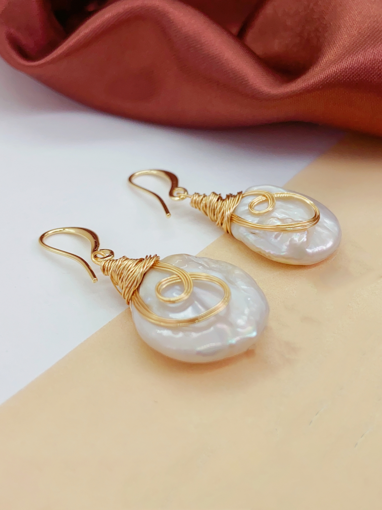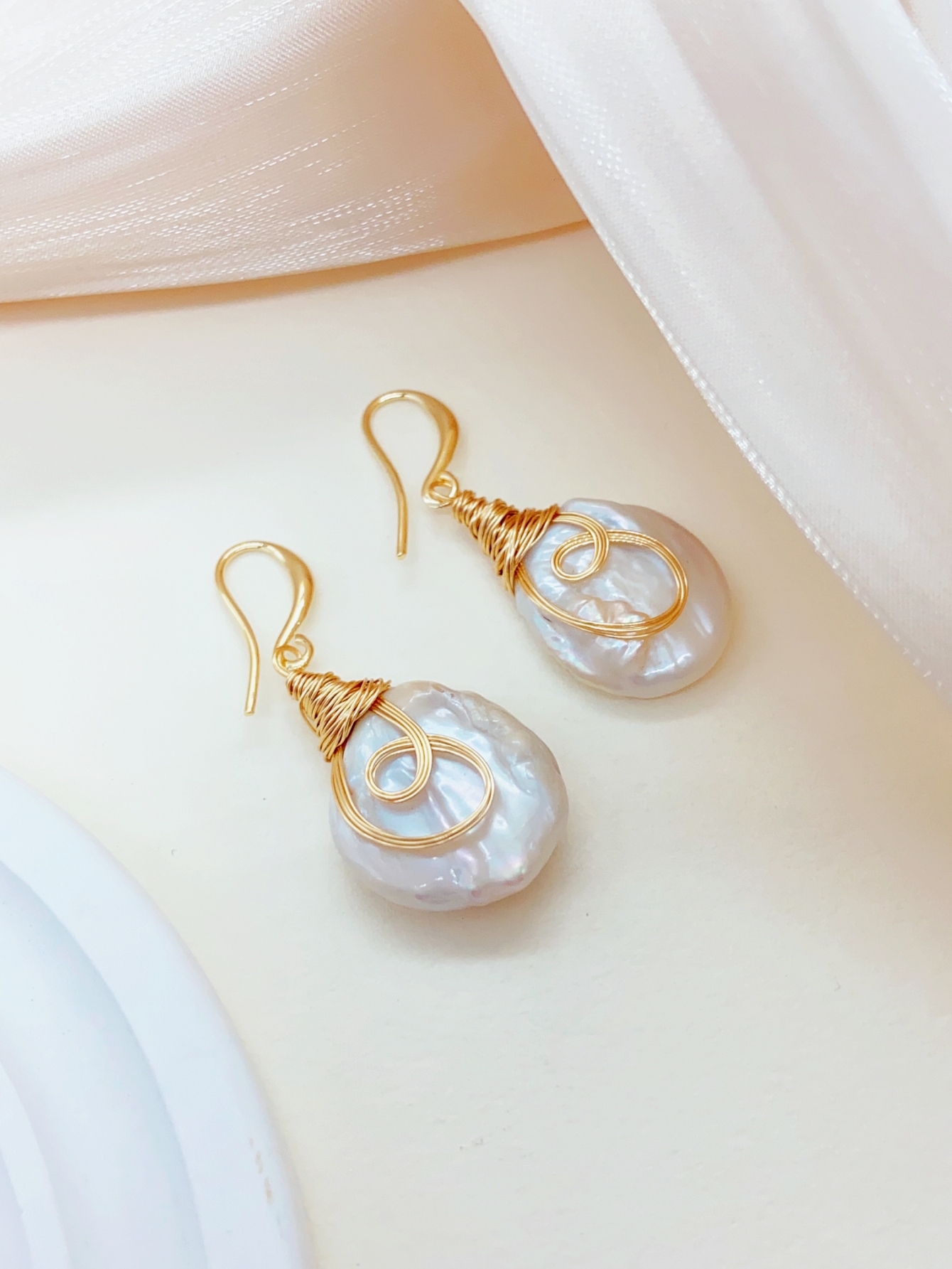 这款珍珠耳环采用优雅的金色和精致的珍珠,展现出高贵典雅的气息。 耳环的设计独特简约,通过围绕珍珠编织的耳线凸显珠宝工艺的精湛工艺。 整体设计理念强调细节与品质,融美感与优雅于一体,让佩戴者成为场合的焦点