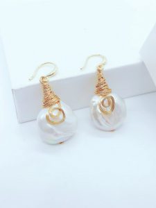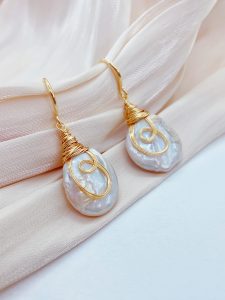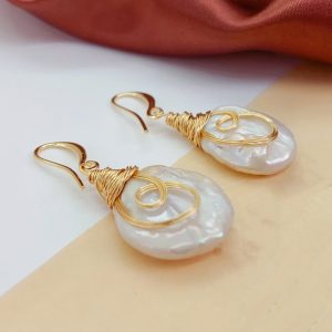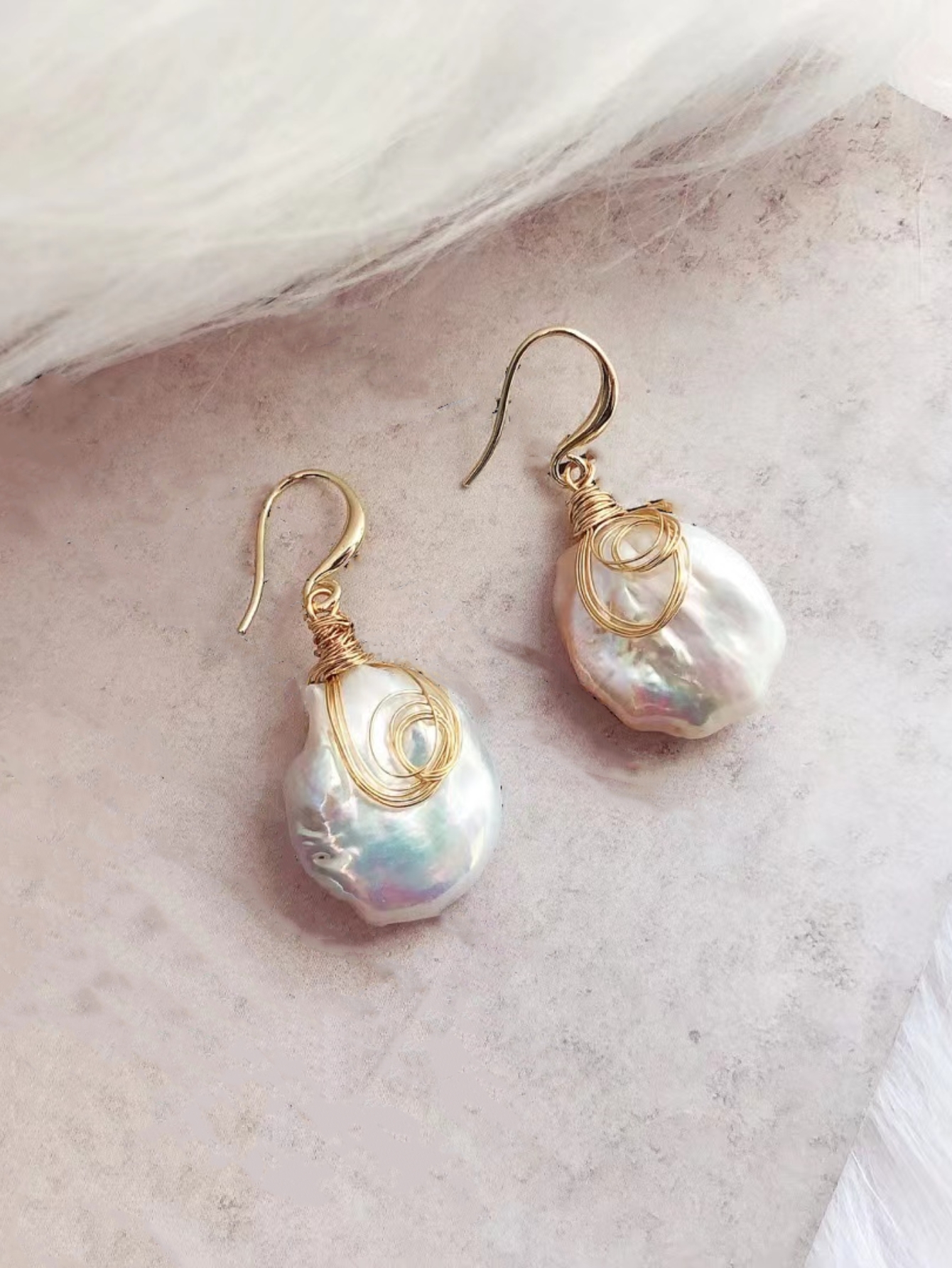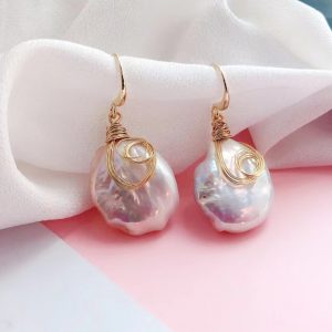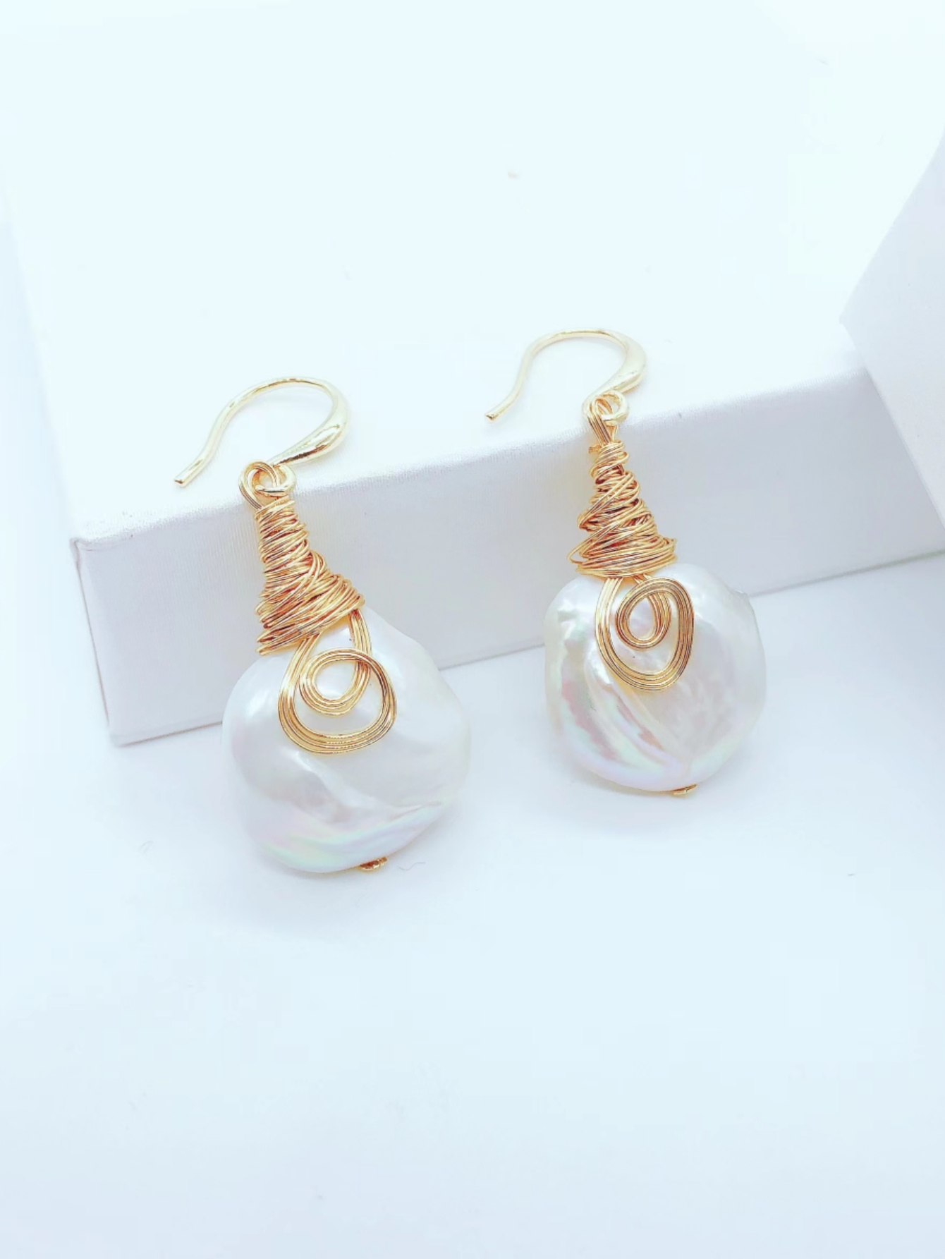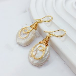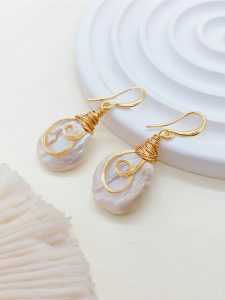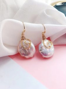这款珍珠耳环采用优雅的金色和精致的珍珠,展现出高贵典雅的气息。 耳环的设计独特简约,通过围绕珍珠编织的耳线凸显珠宝工艺的精湛工艺。 整体设计理念强调细节与品质,融美感与优雅于一体,让佩戴者成为场合的焦点