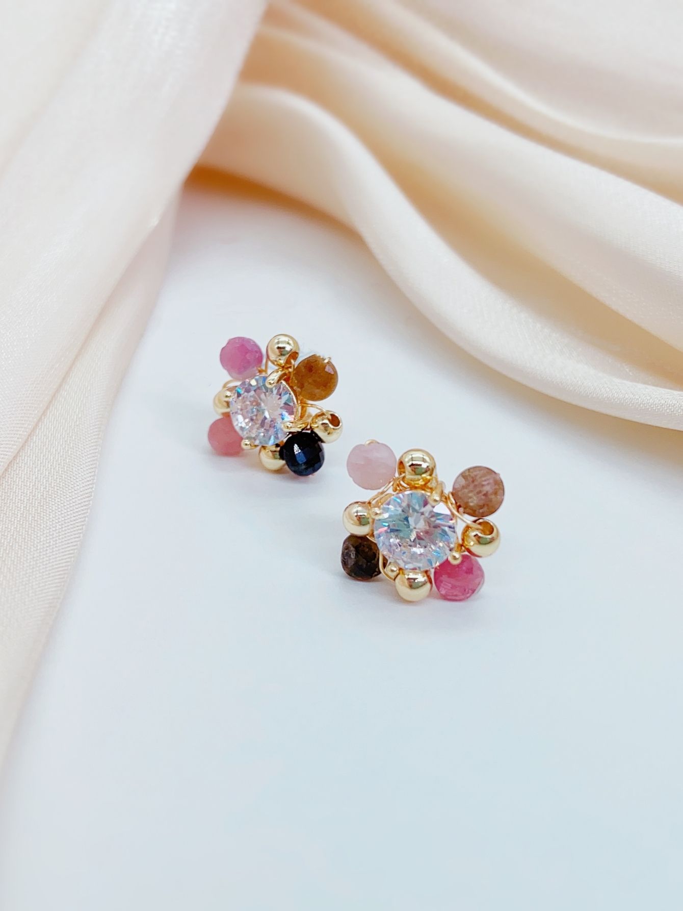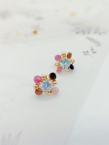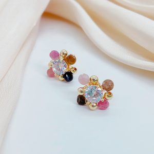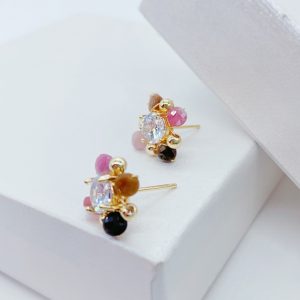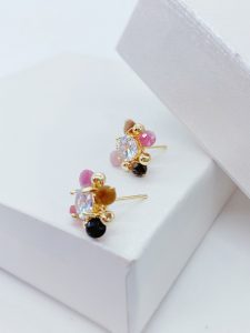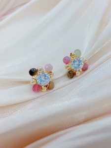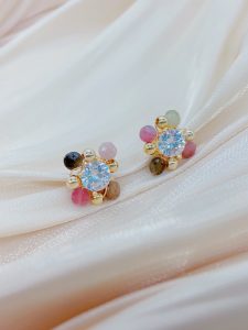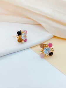 This pair of earrings is strung together with beads of various colors, each bead as colorful as a rainbow, full of vitality and passion for life. The tenderness of pink, the steadiness of brown, and the liveliness of orange intertwine to form a beautiful color picture. This unique color combination not only showcases the wearer’s personality and taste, but also showcases endless charm and brilliance in the details.