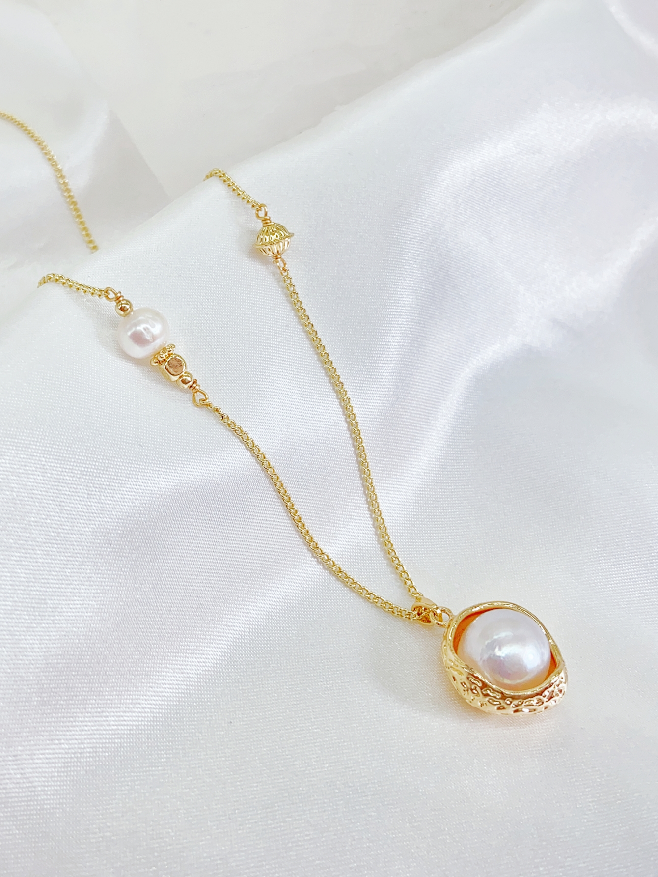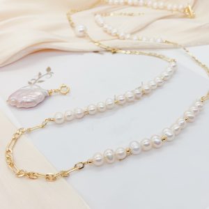 This golden pearl pendant necklace is full of elegance and nobility. Each pearl is carefully selected and polished, round and shiny, like a star in the vast universe, emitting charming charm. A huge white pearl, like a bright moon reflecting in the night sky, mysterious and eye-catching. The combination of pearl white and gold chains creates a sharp contrast, making the necklace more eye-catching. Meanwhile, pearls also symbolize purity and nobility, complementing the temperament of women. The design concept of this pearl pendant necklace is to integrate the elegance, softness, and nobility of women. It showcases the purest beauty with its simplest design, making it the best accessory choice for women. Whether it’s for parties, dates, or daily wear, it can add a charming glow to women.