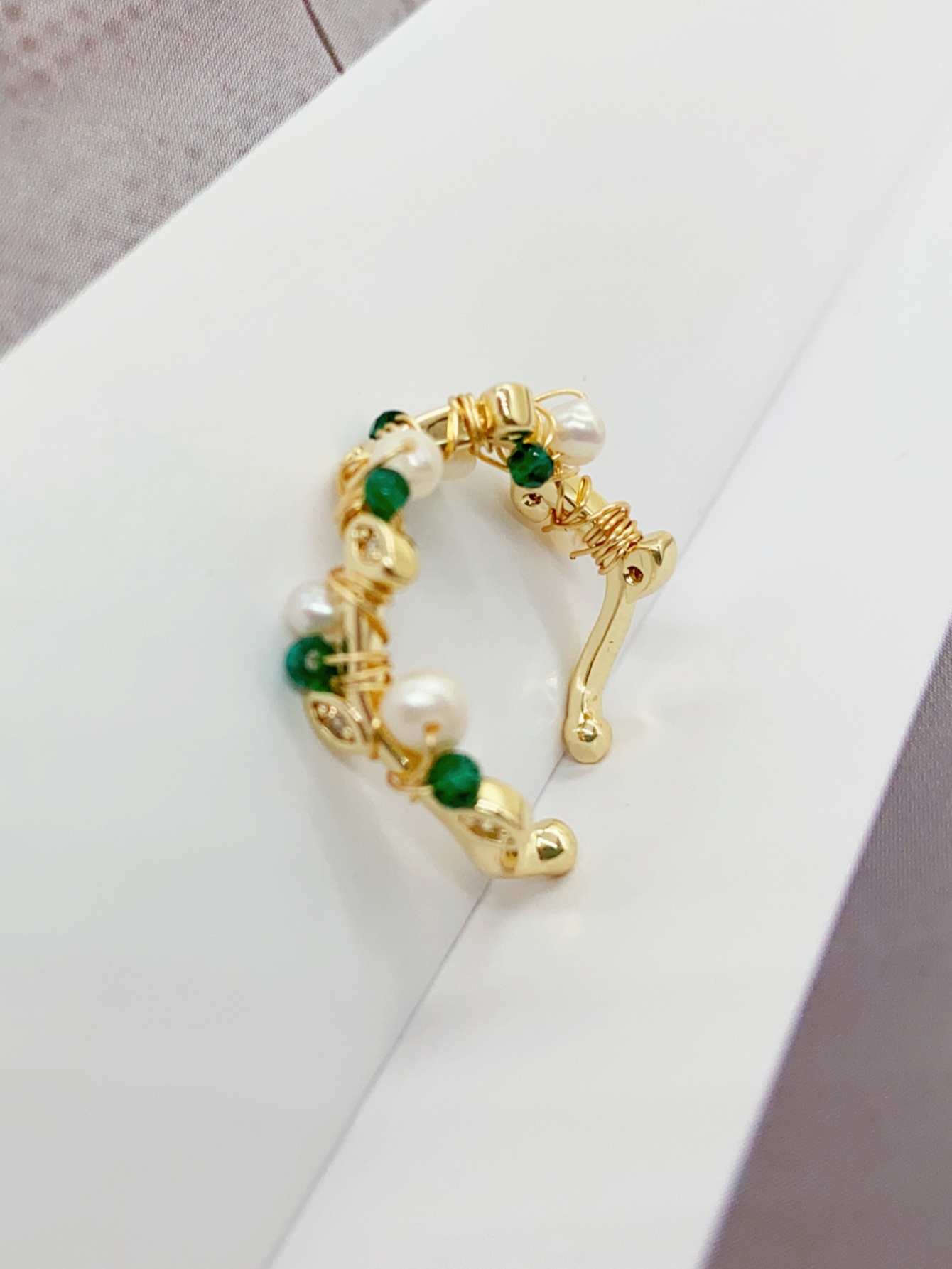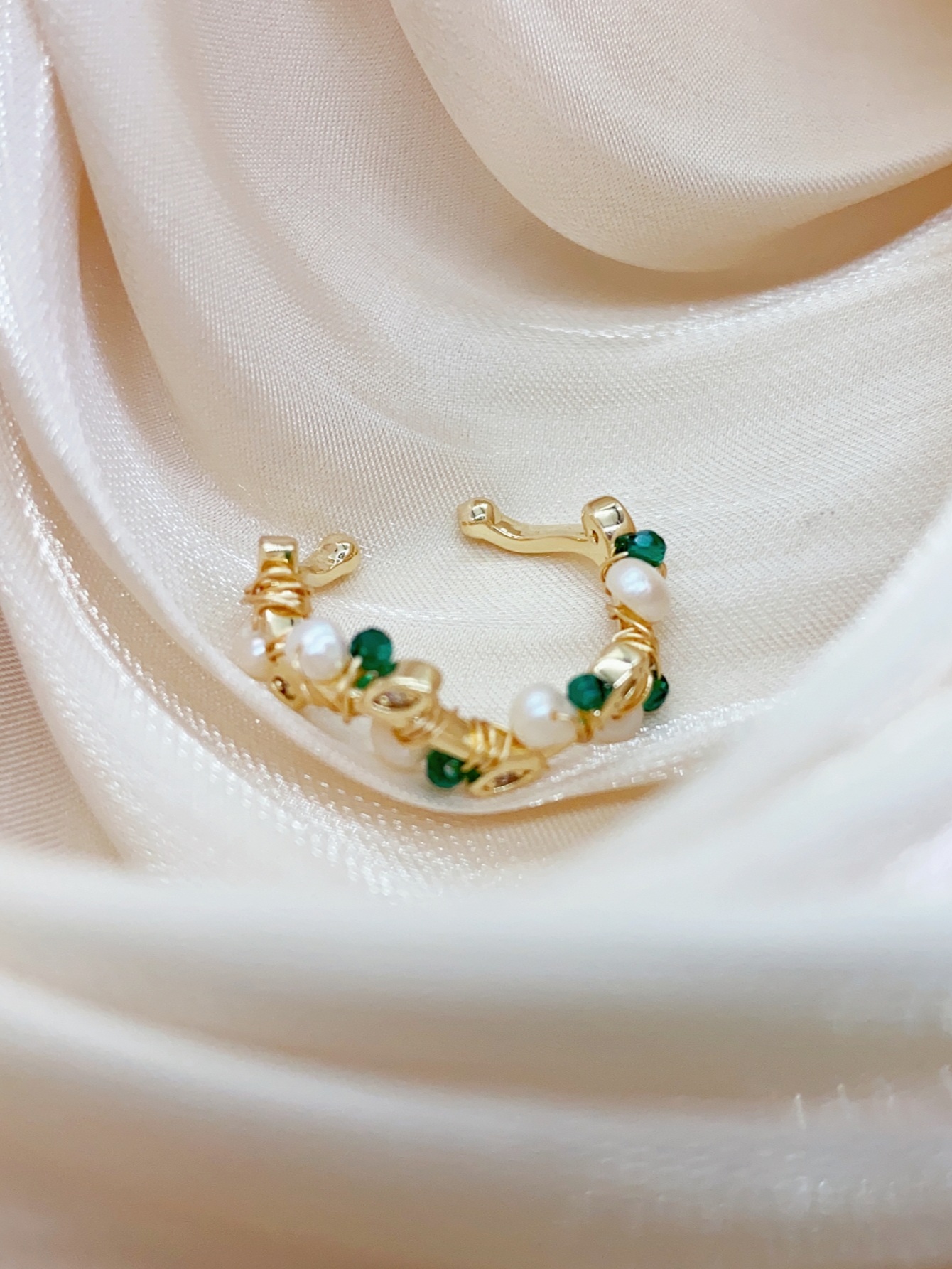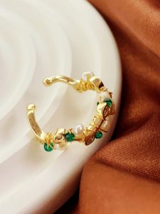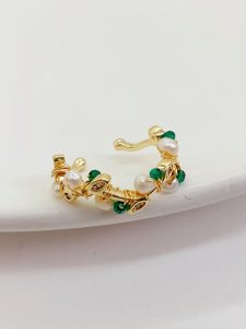 这款金色可调节戒指完美融合了珍珠和祖母绿的优雅与光彩,散发着独特的魅力和个性化风格。 同时采用优质镀金材质和可调节设计精制而成,使其成为实用性与美观性相结合的珠宝艺术品。 如果您正在寻找一款独特的戒指来展示您的个性和品味,那么这款金色可调节戒指绝对是您的最佳选择!