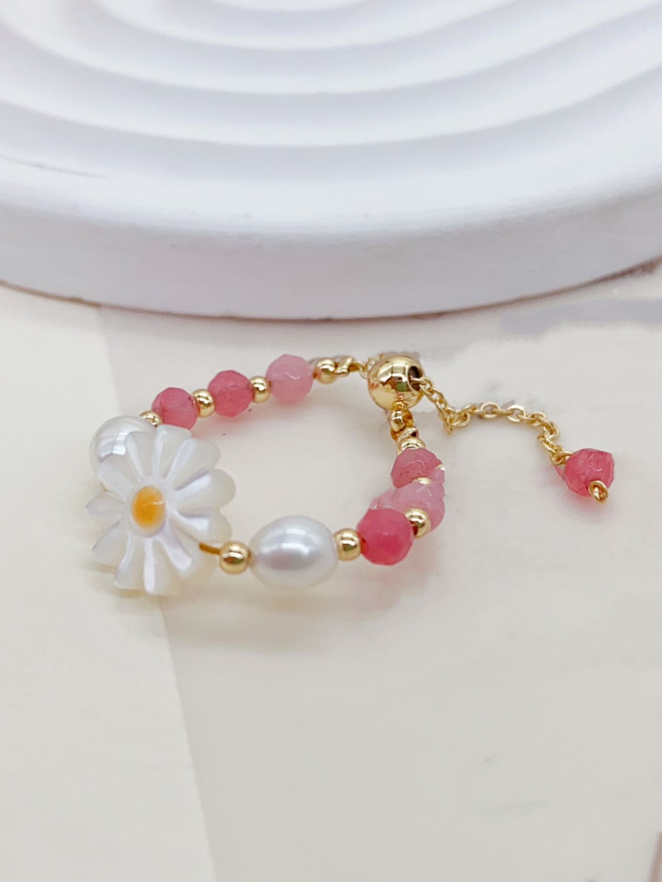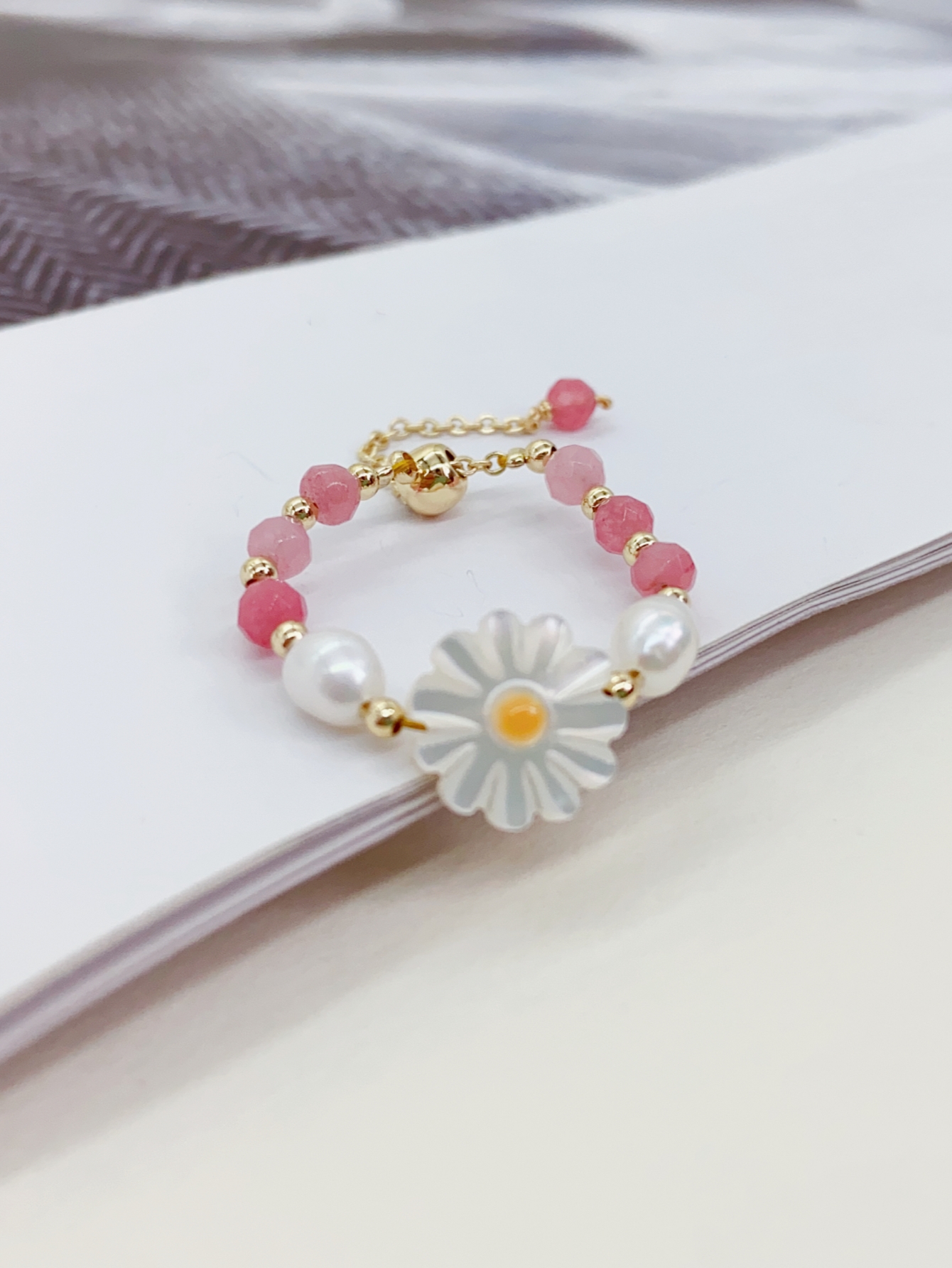 这枚戒指真的很漂亮! 由珍珠和花朵形状的装饰组成,给人一种优雅浪漫的感觉。 戒指的每一个细节都经过精心设计和打磨,给人一种无与伦比的精致和美丽的感觉。 戴在手指上,仿佛散发着一种独特的魅力,让人心跳不已。 总之,这款戒指是一款出色的珠宝配饰,无论是送给自己还是作为礼物送给家人和朋友,都是非常不错的选择。
